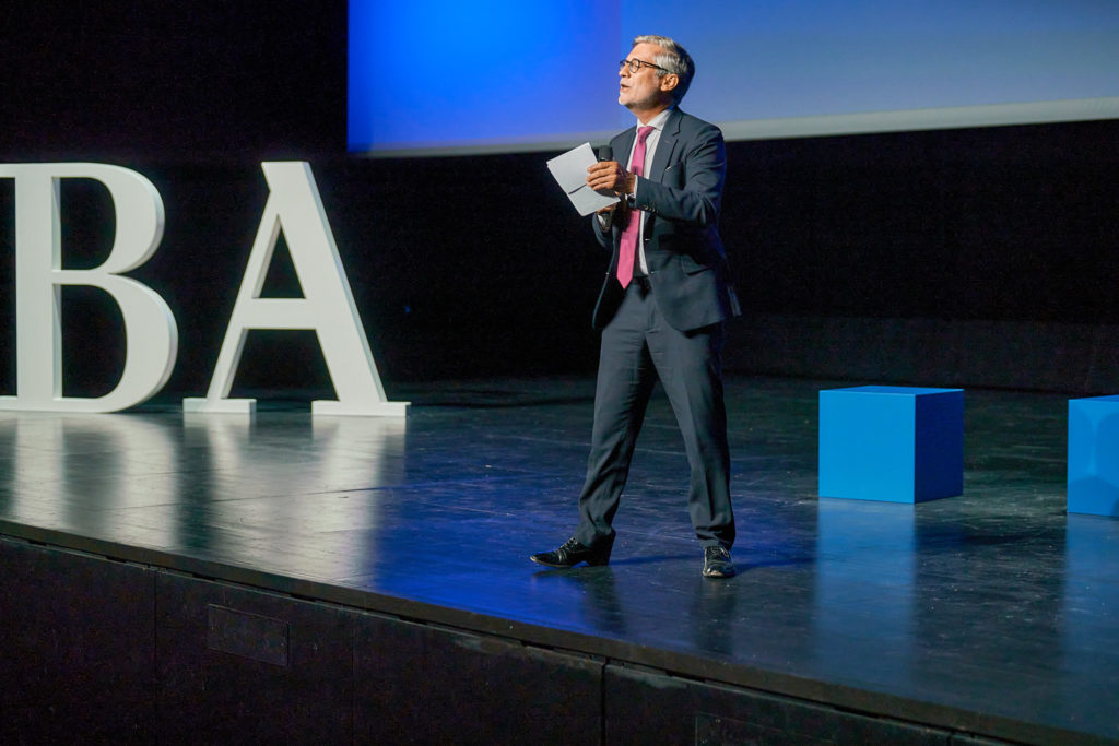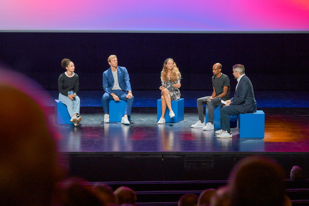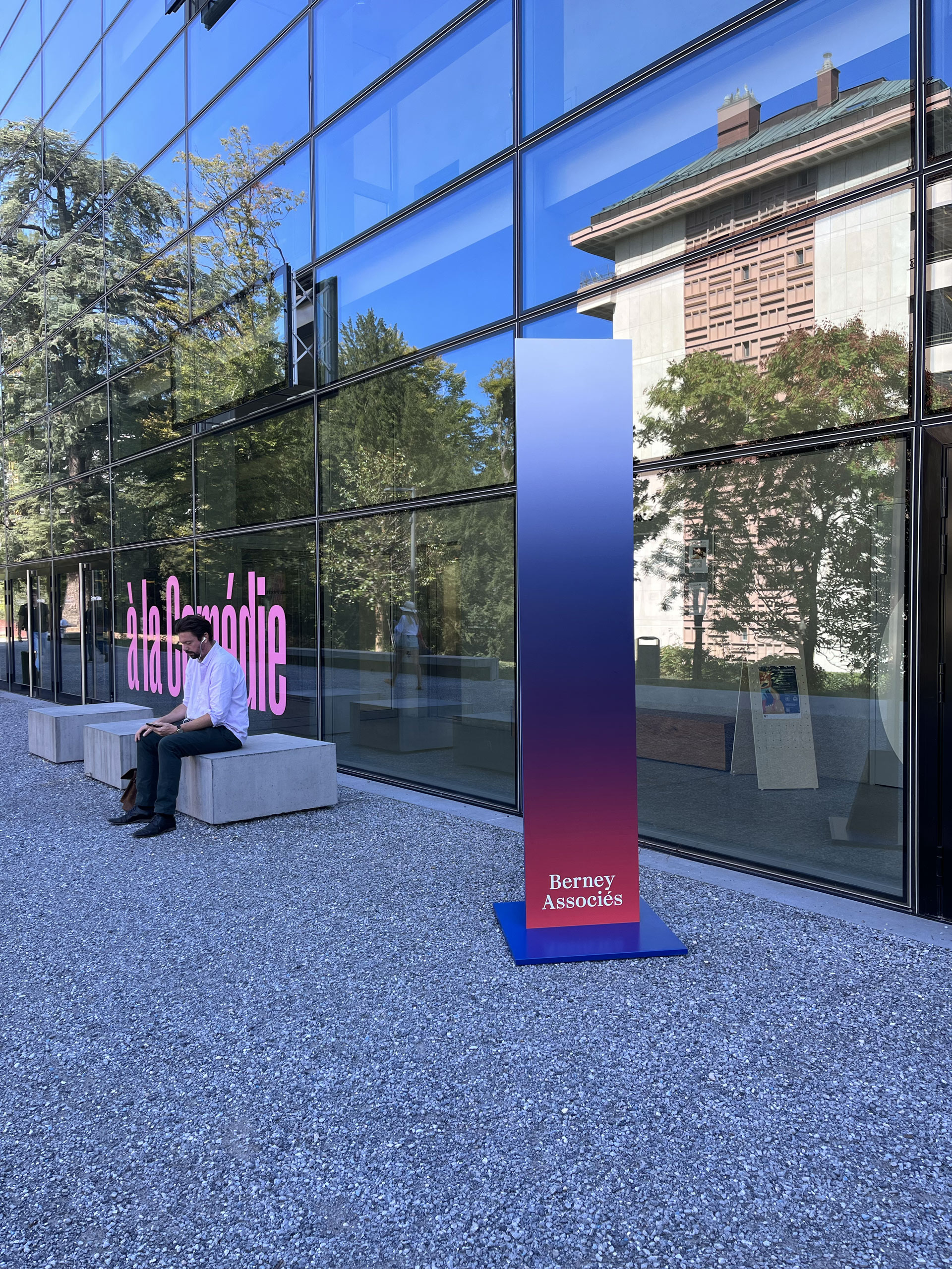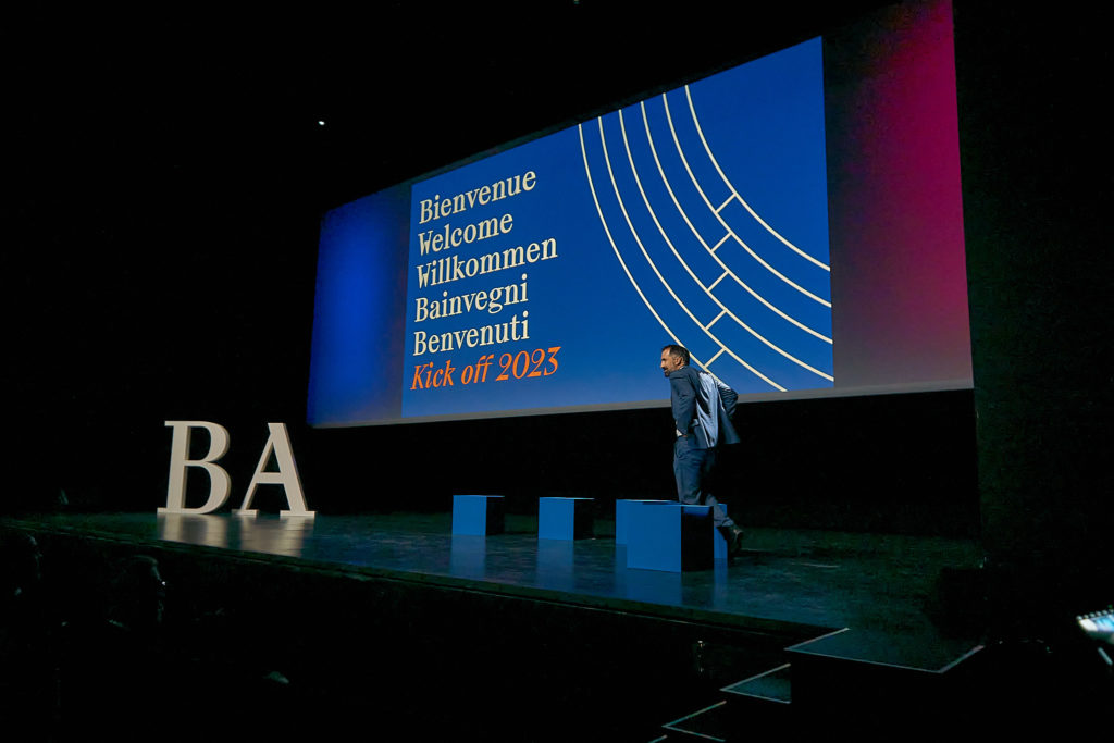 Throughout these events, we have explored and extended BA’s brand identity in creative ways. For example, for their 2022 kick-off at Comédie Genève, we transformed their brand colors into a 25m² gradient-printed floor.