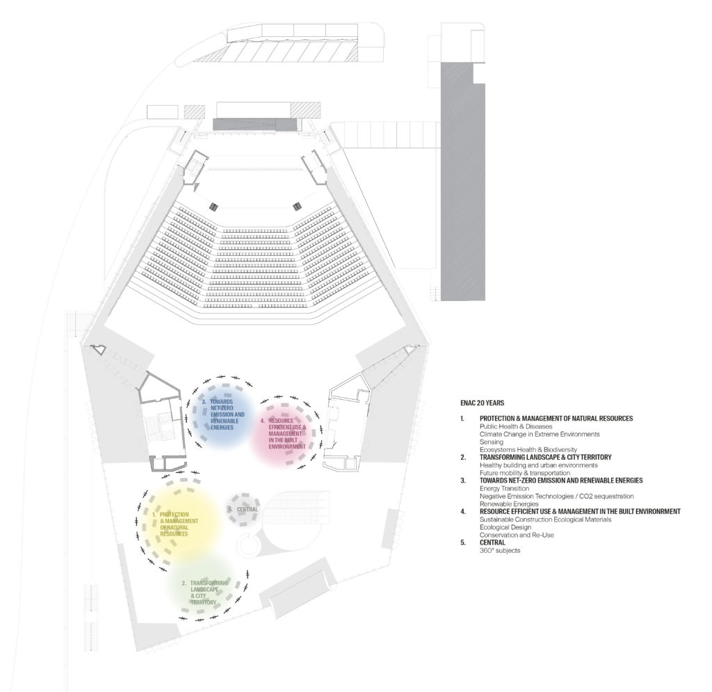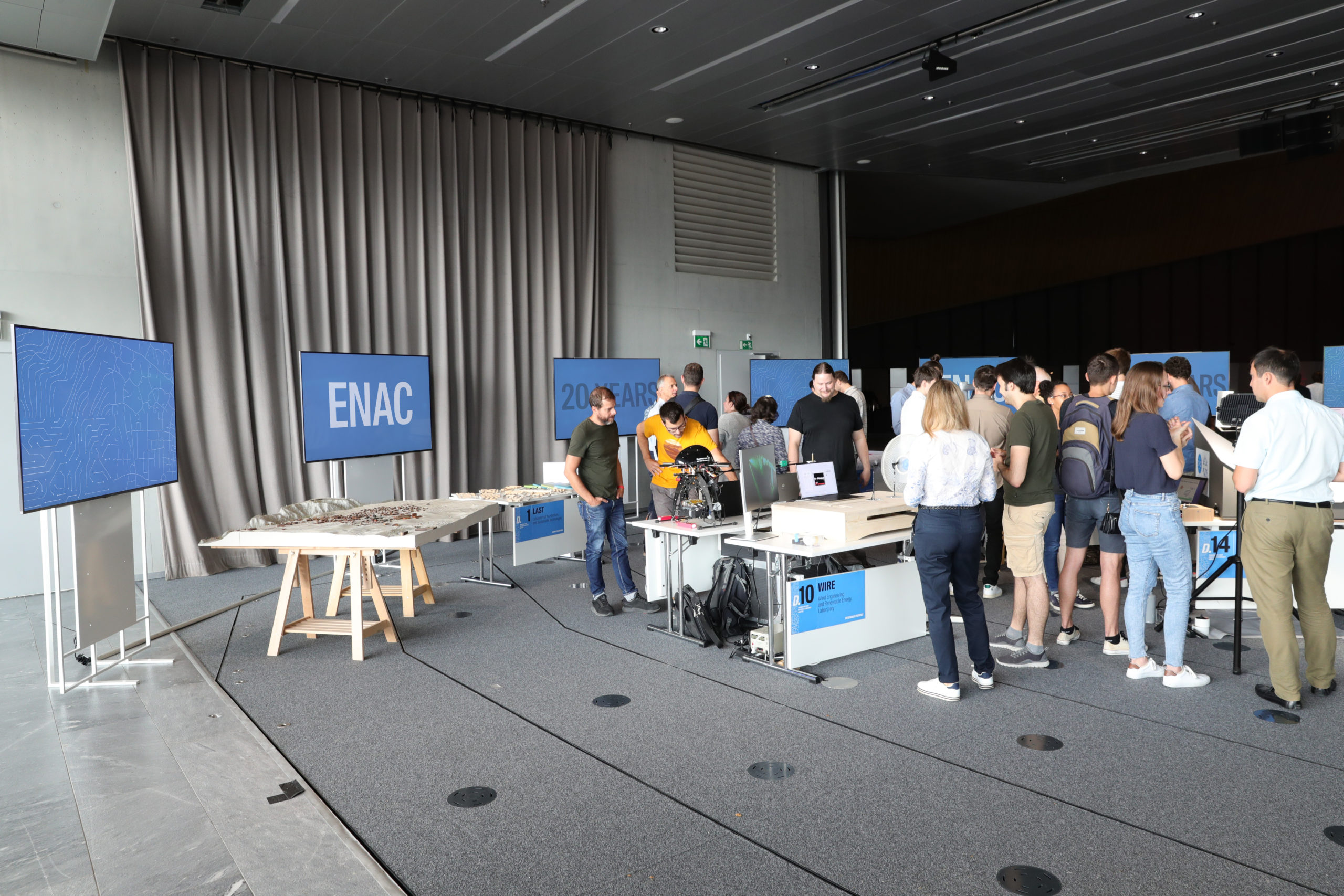 L’ENAC (EPFL) a organisé une exposition pour célébrer ses 20 ans d’activité. Nous avons conçu une scénographie immersive avec 36 écrans connectés synchronisés, qui définissaient physiquement et thématiquement différentes zones de l’exposition et de la recherche. Ces écrans servaient à la fois d’affichage pour l’exposition et d’organisateurs d’espace, guidant les visiteur·teuse·x·s à travers le lieu.